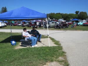 The weather cooperated this year for our annual Collector Car Swap Meet and we had a financially successful event. Vendors occupied our indoor, outdoor and under cover spaces, offering their wide variety of automobile related items. One vendor was tempting visitors with his late 1930’s Pontiac for sale.